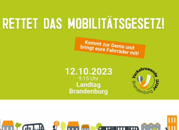 Helft uns das Mobilitätsgesetz für Brandenburg zu retten und macht mit uns in der Öffentlichkeit deutlich: So, wie das Gesetz jetzt entkernt wurde, ist es nicht mehr tragbar. Damit bleibt die Verkehrswende in Brandenburg weiterhin aus!