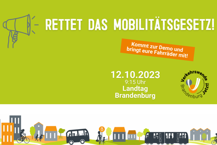 Helft uns das Mobilitätsgesetz für Brandenburg zu retten und macht mit uns in der Öffentlichkeit deutlich: So, wie das Gesetz jetzt entkernt wurde, ist es nicht mehr tragbar. Damit bleibt die Verkehrswende in Brandenburg weiterhin aus!